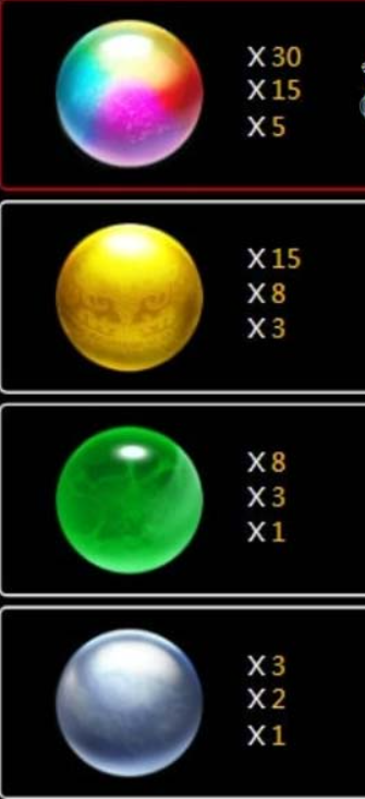 - สัญลักษณ์ ลูกแก้วสีเขียว ตั้งแต่ 3 4 และ 5 อัตราการจ่ายเงินรางวัลของเกม อยู่ที่ x1, x3, x8